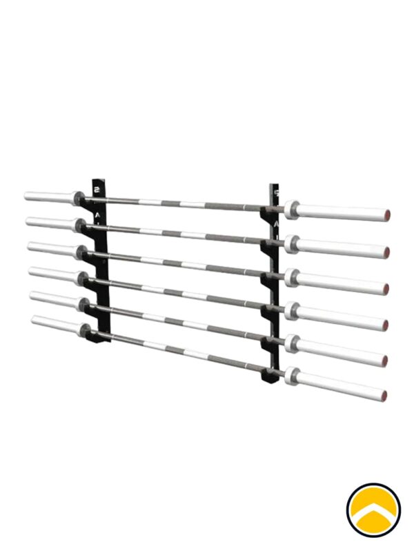 Sip tároló, 6 rúddal rendelkező, kompakt megoldás a fitness terület rendezésére. Ez a tároló biztonságos és hatékony tárolást biztosít a rudak számára, így megőrzi a teret és könnyű hozzáférést biztosít az edzés alatt a felszerelésekhez.